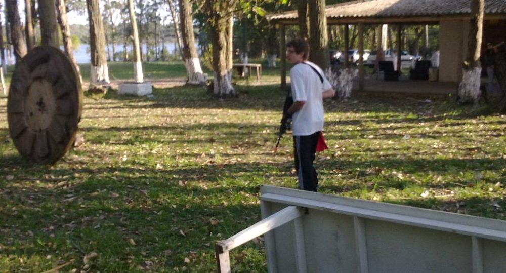 O local de jogo tem muitas árvores, mas a grande maioria delas não consegue esconder uma pessoa. Uns pouco obstáculos estavam mais concentrados em um lado do campo, o que não tirou a diversão do jogo, serviu apenas para o pessoal se esforçar mais para avançar.